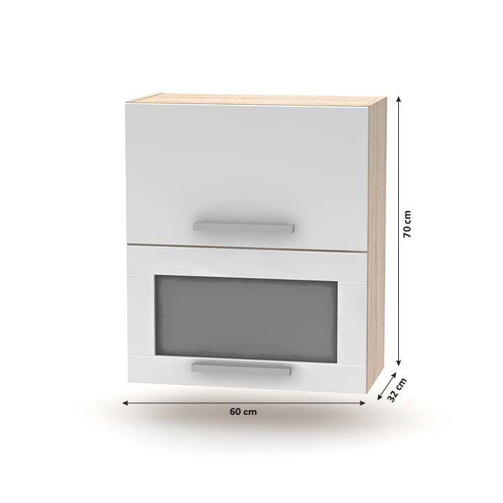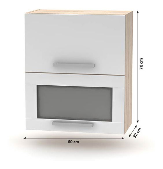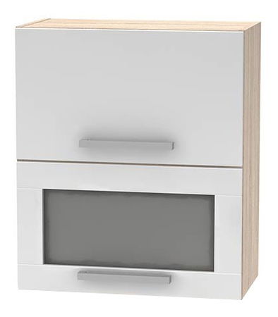 Horní kuchynská výklopná Skříňka se sklem NOPL-009-OH Noliana (bílá + dub sonoma)