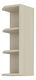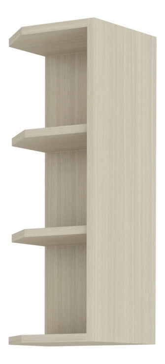 Dolní regál z kuchyňského sektorového systému v moderním style, má tři odkládací prostory. Skříňka je univerzální, uzavírá řadu horních skříněk buď z pravé nebo levé strany. Poslouží k odložení sklenic, dóz se surovinami, pepřen, případně do ní můžete zakomponovat nějaké dekorace, a tak kuchyni oživit.