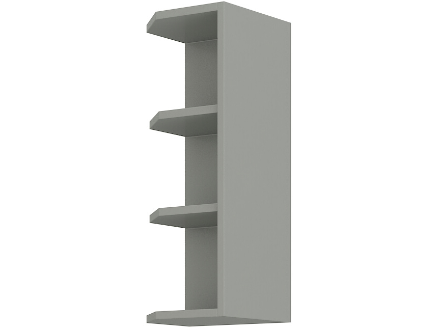Dolní regál z kuchyňského sektorového systému v moderním style, má tři odkládací prostory. Skříňka je univerzální, uzavírá řadu horních skříněk buď z pravé nebo levé strany. Poslouží k odložení sklenic, dóz se surovinami, pepřen, případně do ní můžete zakomponovat nějaké dekorace, a tak kuchyni oživit.