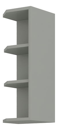 Dolní regál z kuchyňského sektorového systému v moderním style, má tři odkládací prostory. Skříňka je univerzální, uzavírá řadu horních skříněk buď z pravé nebo levé strany. Poslouží k odložení sklenic, dóz se surovinami, pepřen, případně do ní můžete zakomponovat nějaké dekorace, a tak kuchyni oživit.
