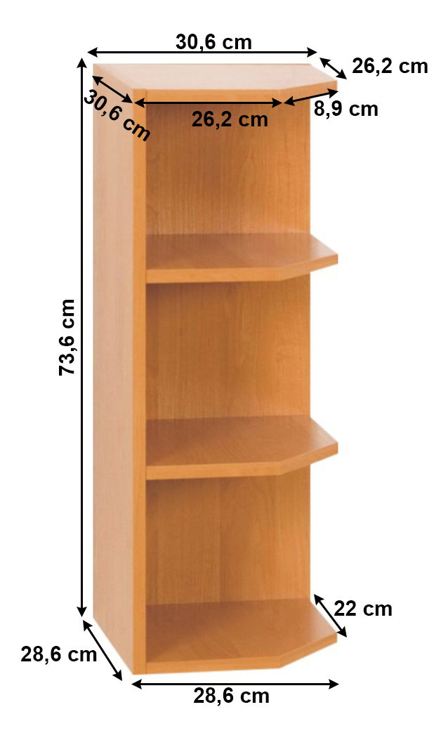 ZobrazitHorní kuchyňská skříňka Leite MDF klasik W30N olše (P) je vyrobena z DTD laminovaného materiálu a má tloušťku 16 mm. Jedná se o horní rohovou skříňku s poličkami v pravém provedení z kuchyňské sestavy Lora MDF klasik. Skříňka má rozměr 28,6x22/28,6x73,6 cm a je dodávána v demontu. Lze ji doplnit o ozdobnou lištu.