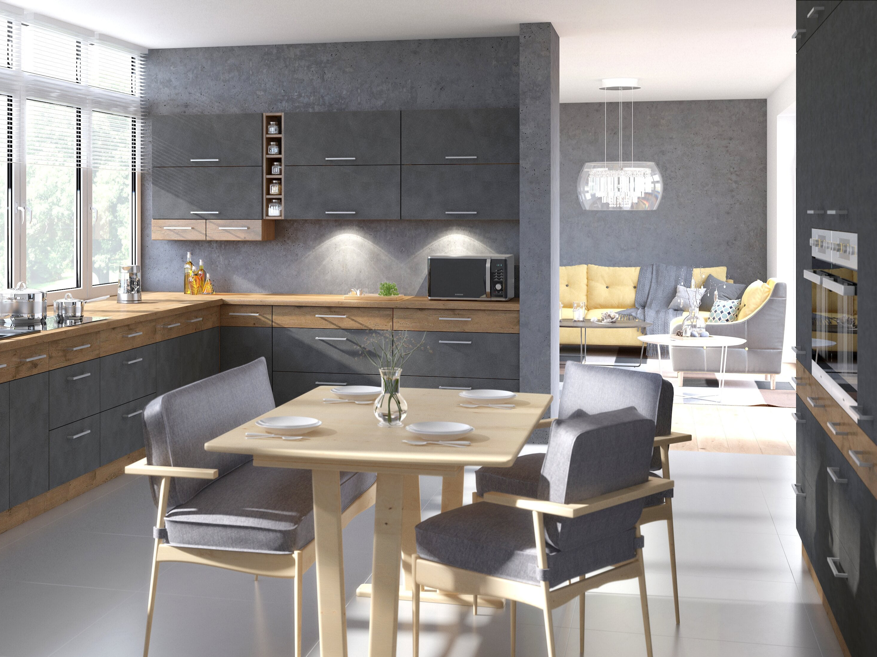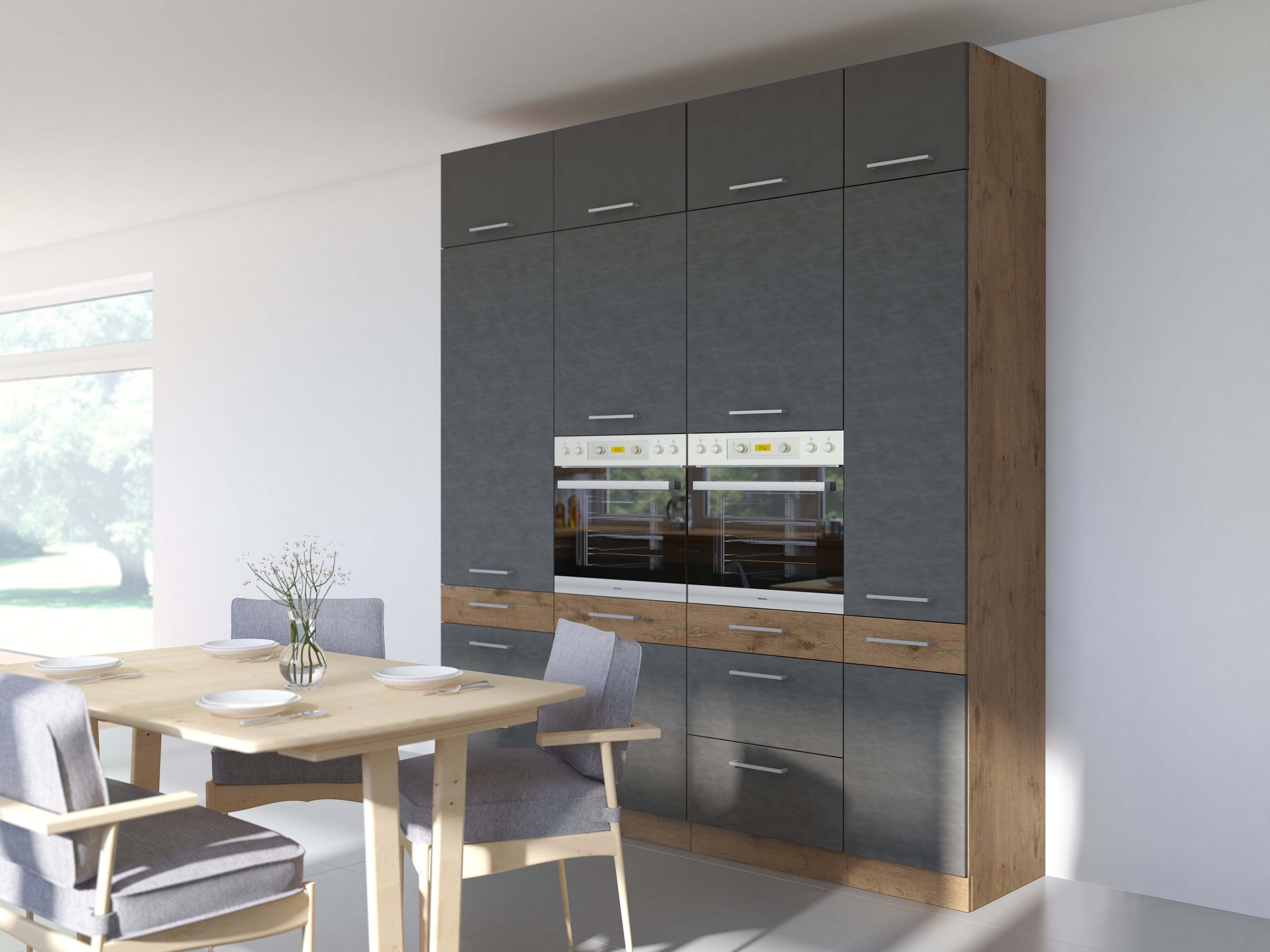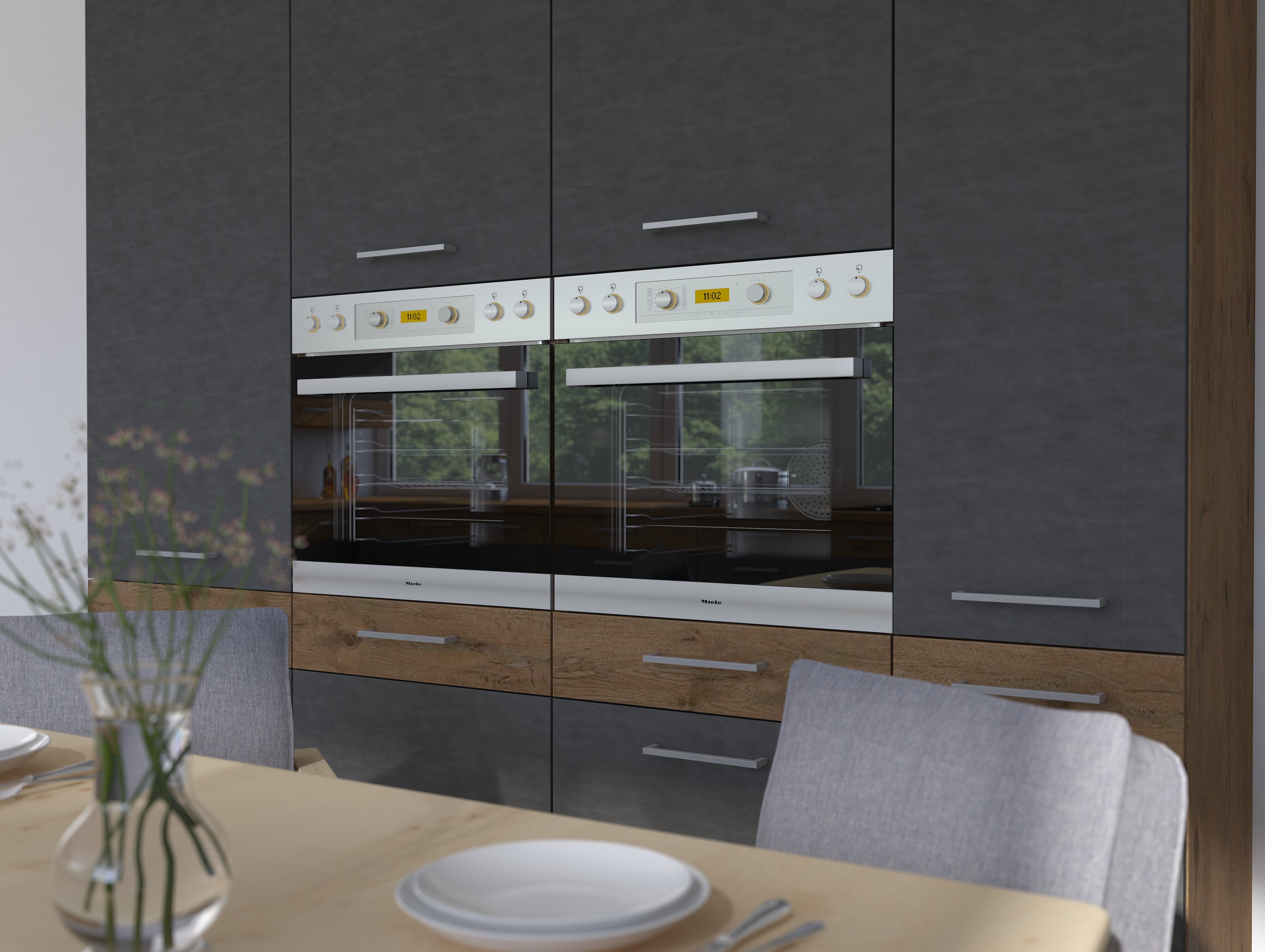 Staňte se pro tuto chvíli architektem a designér vlastní kuchyně. Nabízíme Vám směs designových skříněk v barvě bílá, šedá a bordó v kombinaci dubu Lancelot. Přáli jste si mít troubu v úrovni učí, nebo ji máte rádi v dole. Přáli jste si skříňky s výklopnými dvířky nebo klasicky doprava či doleva. Výběr je na vás a na vaší fantazii.