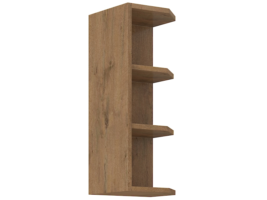 Dolní regál z kuchyňského sektorového systému v moderním style, má tři odkládací prostory. Skříňka je univerzální, uzavírá řadu horních skříněk buď z pravé nebo levé strany. Poslouží k odložení sklenic, dóz se surovinami, pepřen, případně do ní můžete zakomponovat nějaké dekorace, a tak kuchyni oživit.