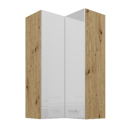 - Horní rohová kuchyňská skříňka Arryn 60x60 GN-108 2F (90°) (korpus: dub artisan / fronta: lesk bílý)