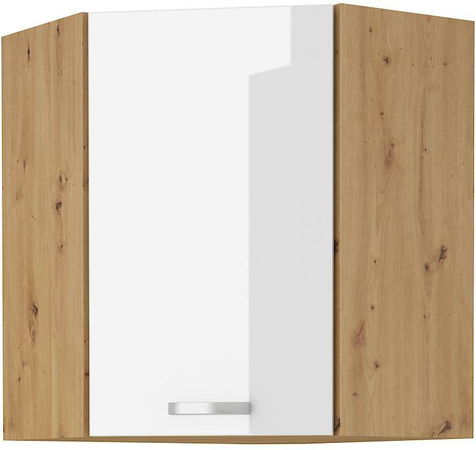 - Horní rohová kuchyňská skříňka Arryn 60x60 GN-72 1F (45°) (korpus: dub artisan / fronta: lesk bílý)