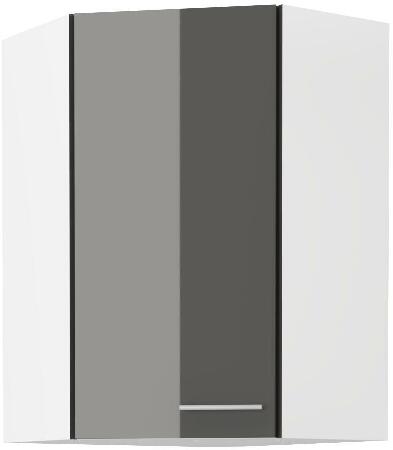 - Horní rohová kuchyňská skříňka Lavera 60x60 GN-90 1F (45°) (korpus: bílá + fronta: lesk šedý)