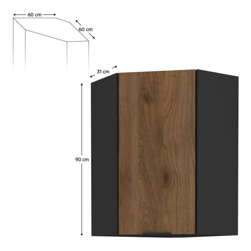 Horní rohová kuchyňská skříňka Monzesa 60x60 GN 90 1F (ořech okapi + černá)