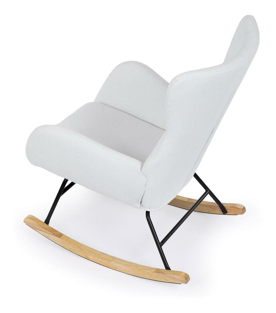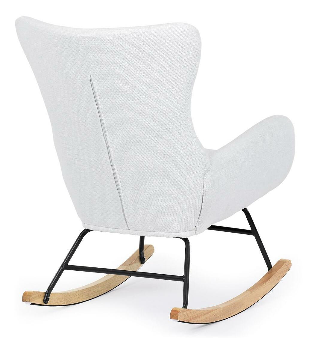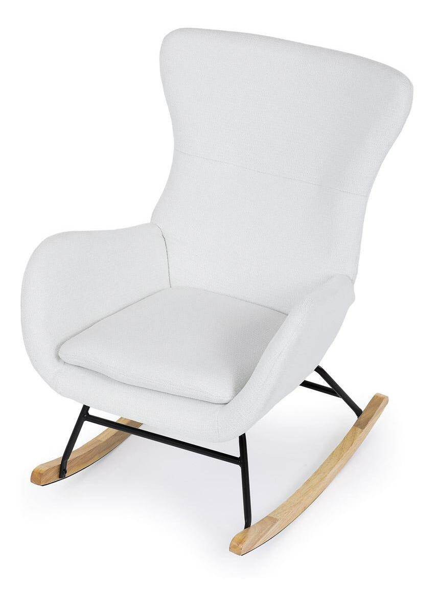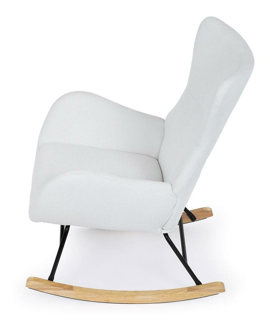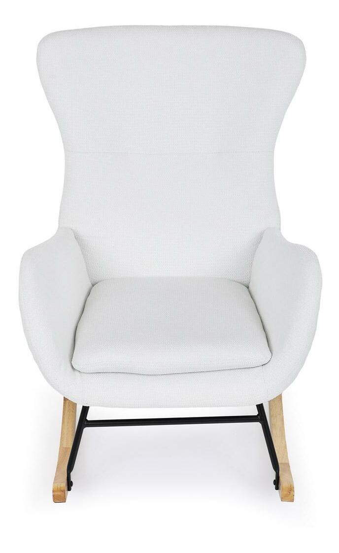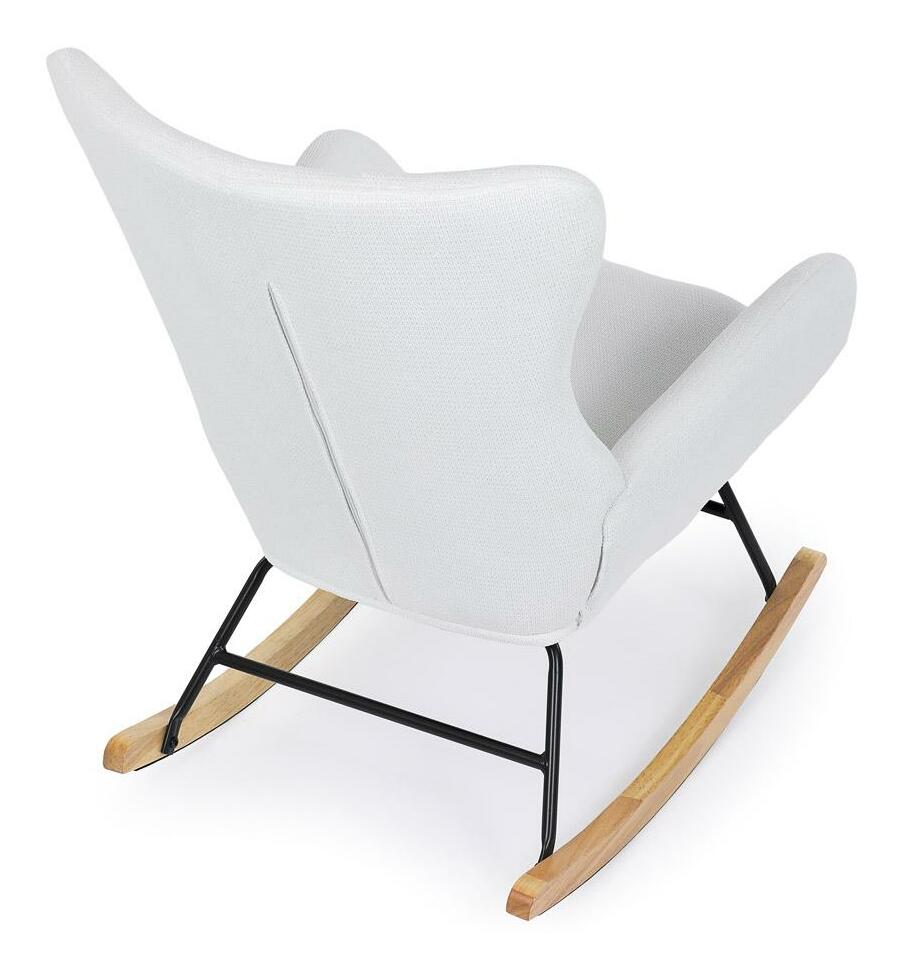 Vložte do svého interiéru nádech elegance s naší moderní houpací židlí. Potěšující kombinace čisté bílé hladké látky a přírodních dřevěných nohou dodává místnosti sofistikovaný vzhled. Robustní masivní nohy zajišťují stabilitu, zatímco pohupový podnož nabízí pohodlný a uklidňující zážitek při houpání. Perfektní pro relaxaci v obývacím pokoji nebo pracovně. Tato houpací židle je ideálním prvkem, který spojuje styl a komfort pro jakýkoli moderní interiér.