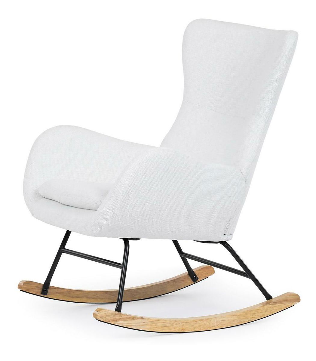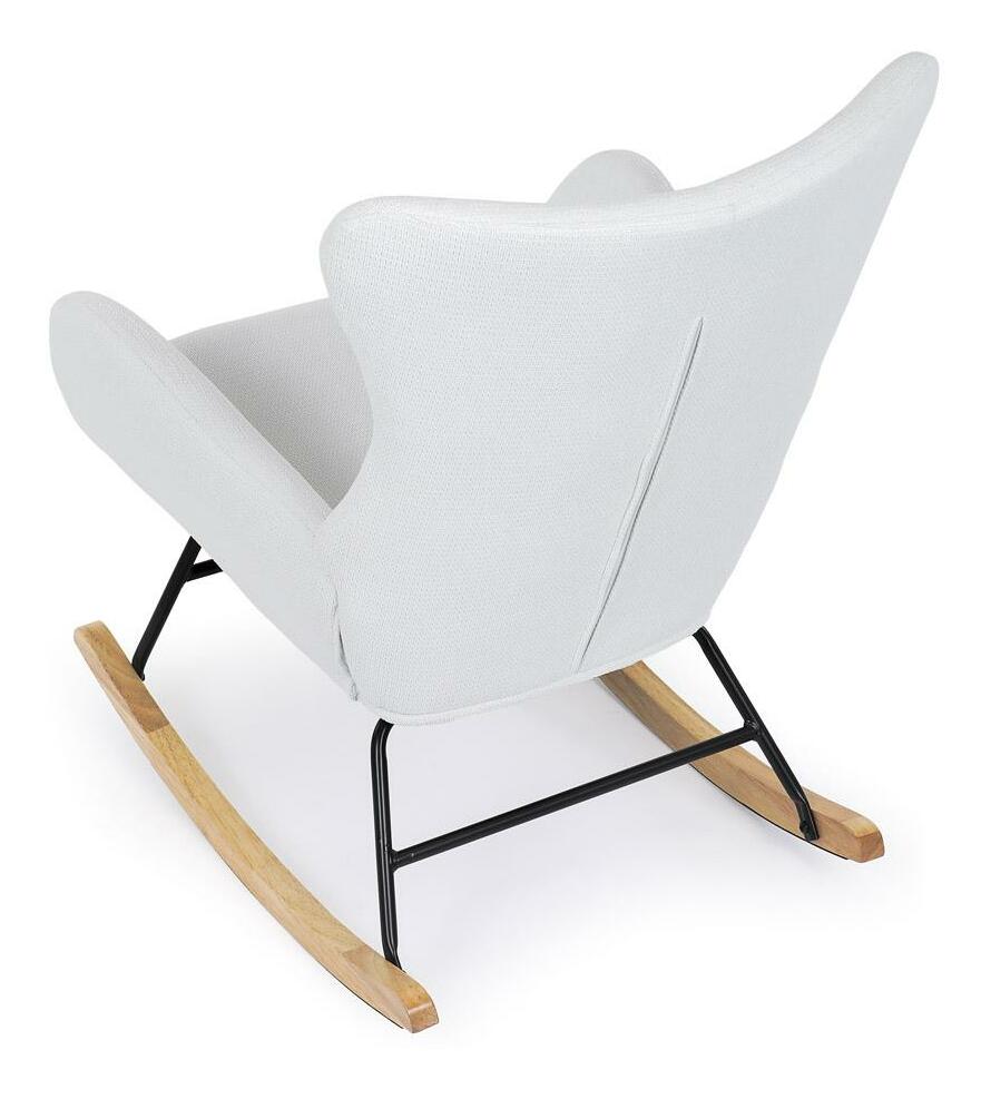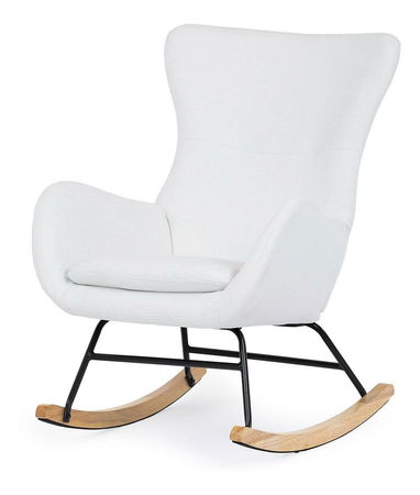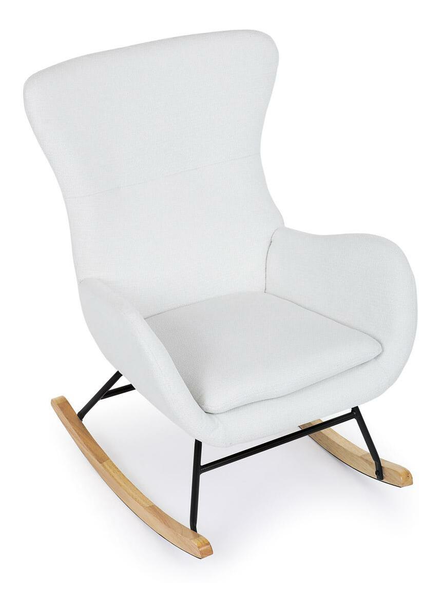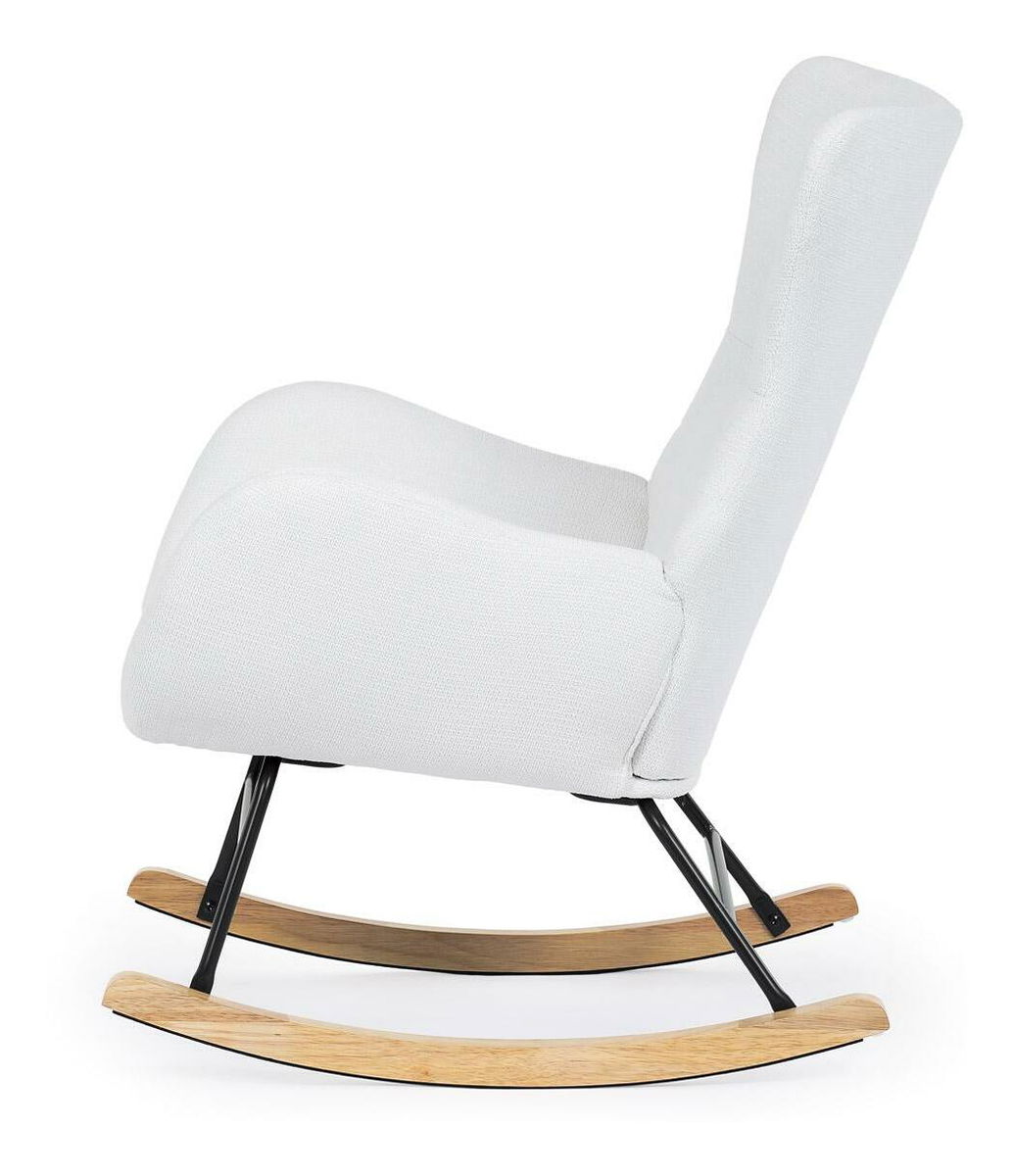 Vložte do svého interiéru nádech elegance s naší moderní houpací židlí. Potěšující kombinace čisté bílé hladké látky a přírodních dřevěných nohou dodává místnosti sofistikovaný vzhled. Robustní masivní nohy zajišťují stabilitu, zatímco pohupový podnož nabízí pohodlný a uklidňující zážitek při houpání. Perfektní pro relaxaci v obývacím pokoji nebo pracovně. Tato houpací židle je ideálním prvkem, který spojuje styl a komfort pro jakýkoli moderní interiér.
