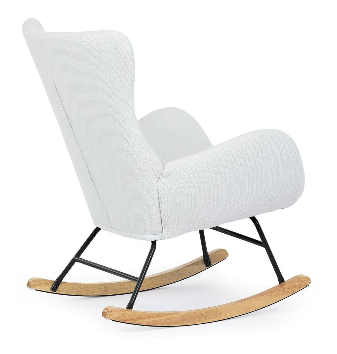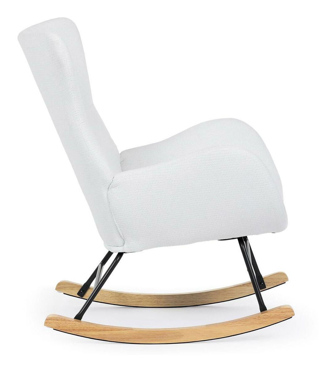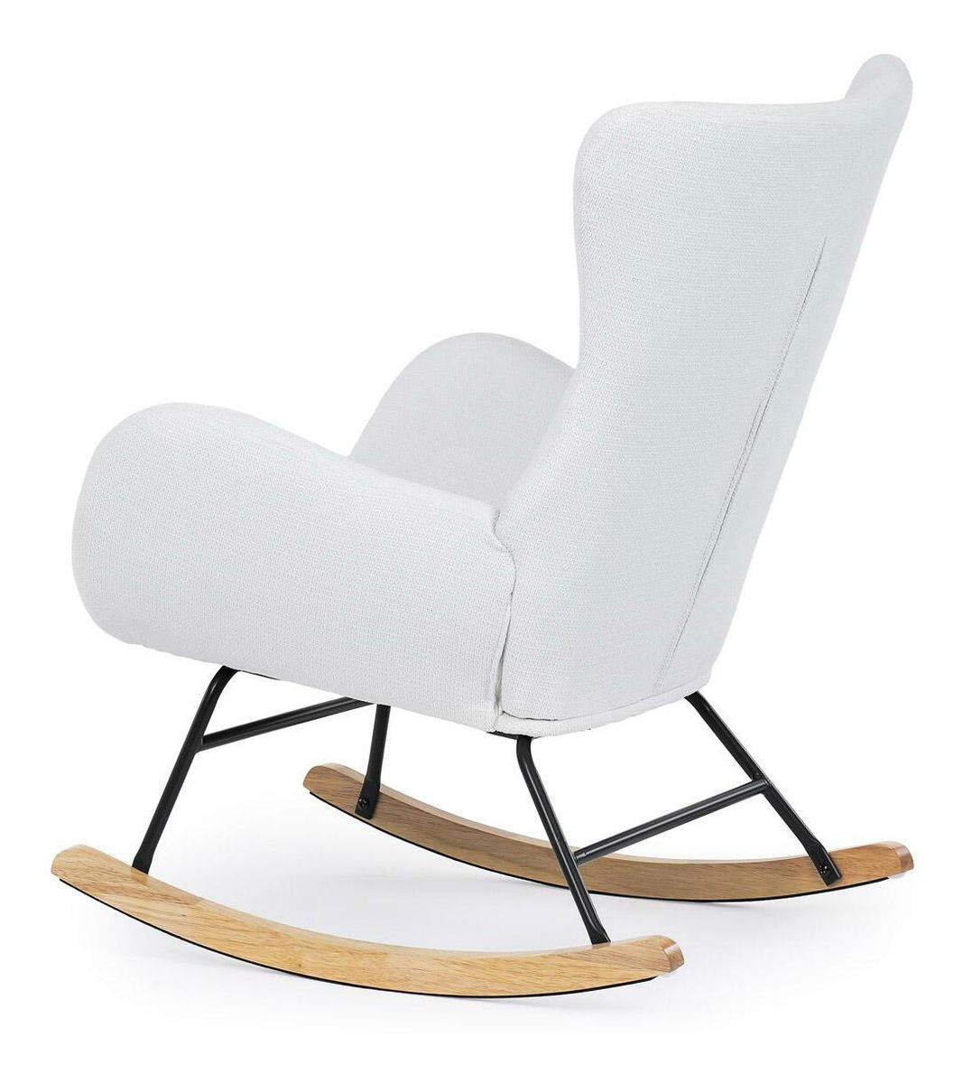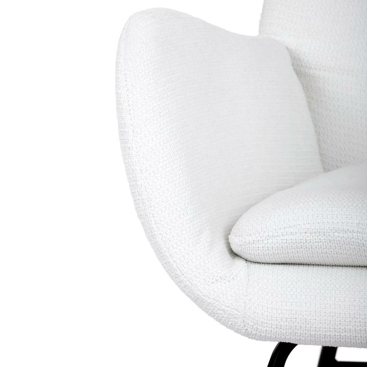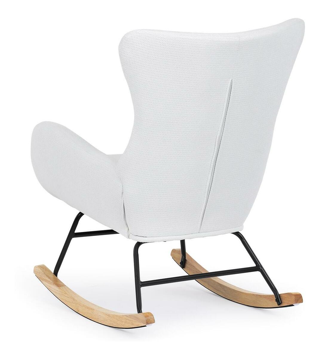 Vložte do svého interiéru nádech elegance s naší moderní houpací židlí. Potěšující kombinace čisté bílé hladké látky a přírodních dřevěných nohou dodává místnosti sofistikovaný vzhled. Robustní masivní nohy zajišťují stabilitu, zatímco pohupový podnož nabízí pohodlný a uklidňující zážitek při houpání. Perfektní pro relaxaci v obývacím pokoji nebo pracovně. Tato houpací židle je ideálním prvkem, který spojuje styl a komfort pro jakýkoli moderní interiér.