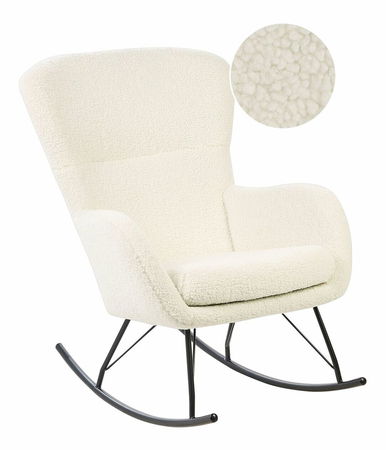 Díky tomuto elegantnímu houpacímu křeslu vynikne zařízení vašeho interiéru. Křeslo je vyrobeno z kvalitní buklé látky, je velmi měkké a příjemné na dotek, díky čemuž je skvělým doplňkem do dětského pokoje, obývacího pokoje nebo větší ložnice. Navíc je velmi odolné a nevyžaduje každodenní údržbu. Jeho bílá barva dokonale ladí s černýma kovovými nohama. Jelikož má velké opěradlo a široké sedátko, bude dokonalým společníkem během odpočinku po dlouhém a náročném dni.