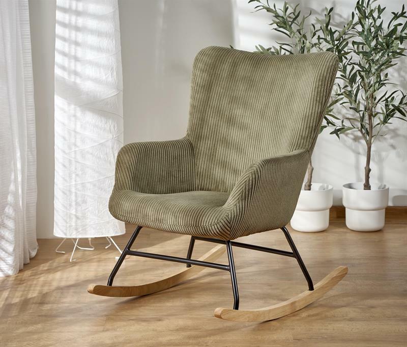 Relaxační houpací křeslo představuje ideální volbu pro každého, kdo hledá místo k odpočinku a relaxaci v pohodlí svého domova. Kombinace ocelových nožiček s práškovým lakováním a prvků z masivního dřeva zajišťuje pevnou a stabilní konstrukci, která zvládne houpací pohyb bezpečně a efektivně. Povrch křesla je pokryt tkaninou HYPER 23, která má vzhled manšestru, což přidává na komfortu a zároveň dodává křeslu stylový vzhled. Nosnost tohoto křesla je stanovena na 120 kg, což zajišťuje jeho dlouhodobé a spolehlivé používání. Výška sedáku 45 cm poskytuje pohodlné sezení, což je ideální pro dlouhé chvíle relaxace při čtení, sledování televize nebo jen tak při houpání a odpočinku. Toto houpací křeslo je vynikající volbou pro každého, kdo ocení jeho funkčnost a moderní design.