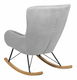 Kombinace komfortu a stylu. Toto houpací křeslo inspirované stylem glamour dokonale doplní moderní či klasický interiér. Světle šedé sametové čalounění je odolné a nenáročné na údržbu. Sedadlo je postaveno na pevné konstrukci s dřevěnými spodními částmi, které zaručují příjemné houpání. Díky hrubé a měkké výplni výborně poslouží jako křeslo u krbu nebo v dětském pokoji.