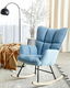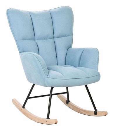 Vytvořte si doma útulný koutek, kde budete moct relaxovat. Toto houpací křeslo s modrým polyesterovým čalouněním doplňuje trendové prošívání. Nohy se spodní částí vyrobenou z kaučukového dřeva zajistí pomalé houpání a křeslo se stane skvělým doplňkem obývacího pokoje nebo ložnice, ale také dětského pokoje. Sedněte si do něj s dítětem v náručí a sledujte, jak v okamžiku usne. Díky barvě a designu jej lze sladit s různými styly interiérového zařízení – od retro až po jiné současné styly.