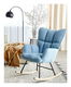 Vytvořte si doma útulný koutek, kde budete moct relaxovat. Toto houpací křeslo se zeleným polyesterovým čalouněním doplňuje trendové prošívání. Nohy se spodní částí vyrobenou z kaučukového dřeva zajistí pomalé houpání a křeslo se stane skvělým doplňkem obývacího pokoje nebo ložnice, ale také dětského pokoje. Sedněte si do něj s dítětem v náručí a sledujte, jak v okamžiku usne. Díky barvě a designu jej lze sladit s různými styly interiérového zařízení – od retro až po jiné současné styly.