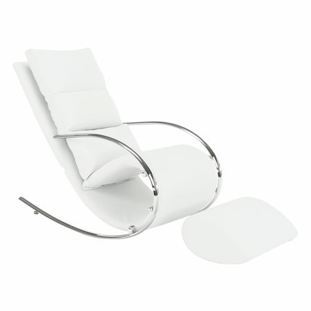 Potrpíte si na maximální komfort a zároveň nevšední design? Toto luxusní křeslo určitě splní všechny Vaše požadavky. Má extravagantní design a ergonomický tvar, který se přizpůsobí Vašemu tělu. Pro větší pohodlí po náročném dni Vám poslouží přiložená podnožka. Křeslo je stabilní díky pevné kovové konstrukci, která umožňuje funkci houpání a zároveň slouží jako opěrky rukou. Křeslo bude velmi elegantním doplňkem ve Vaší obývacím pokoji, či pracovně. Barevné provedení křesla je bílá.