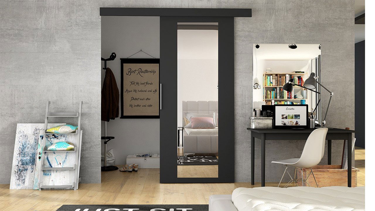 Interiérové posuvné dveře Orenia IV (černá + zrcadlo)