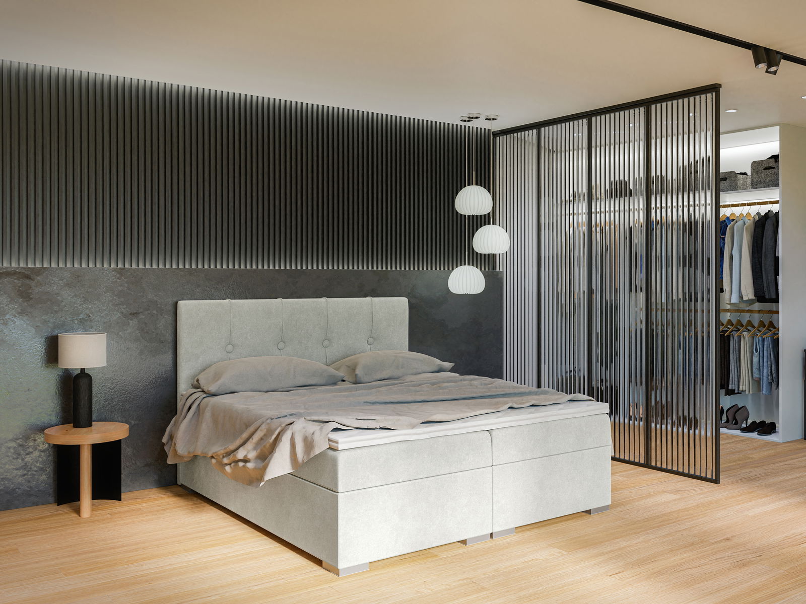 Jednolůžková boxspring postel 120 cm Luffy (světle šedá) (s matrací a úl. prostorem)