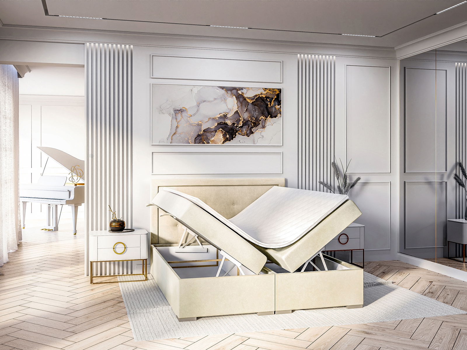 Jednolůžková boxspring postel 120 cm Veronica (krémová) (s matrací a úl. prostorem)