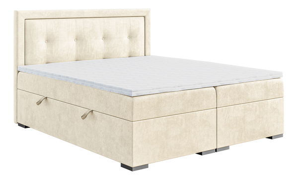 Jednolůžková postel Veronica v krásné krémové barvě s barokními prvky v čele postele. Jednolůžková kontinentální postel má dvě lůžka, která lze vyklápět bočním výklopem. Pod matracemi se nachází velký úložný prostor. Postel stojí na nízkých plastových nožičkách šedé barvy. K posteli přísluší i dvě pružinové matrace a jedna vrchní topper. Konstrukce postele je bílá o tloušťce 16 mm. Víceúrovňová konstrukce je vysoká 65 cm. Čelo postele je prošívané kolem celého okraji a ve středu je prošívané dvěma souběžnými stehy a jsou na něm aplikovány i dekorační knoflíky. Tloušťka molitanu na čele jsou 3 cm.