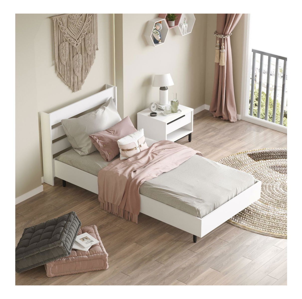 Jednolůžková postel 100 cm Nimelo 6 (bílá) (s roštem)
