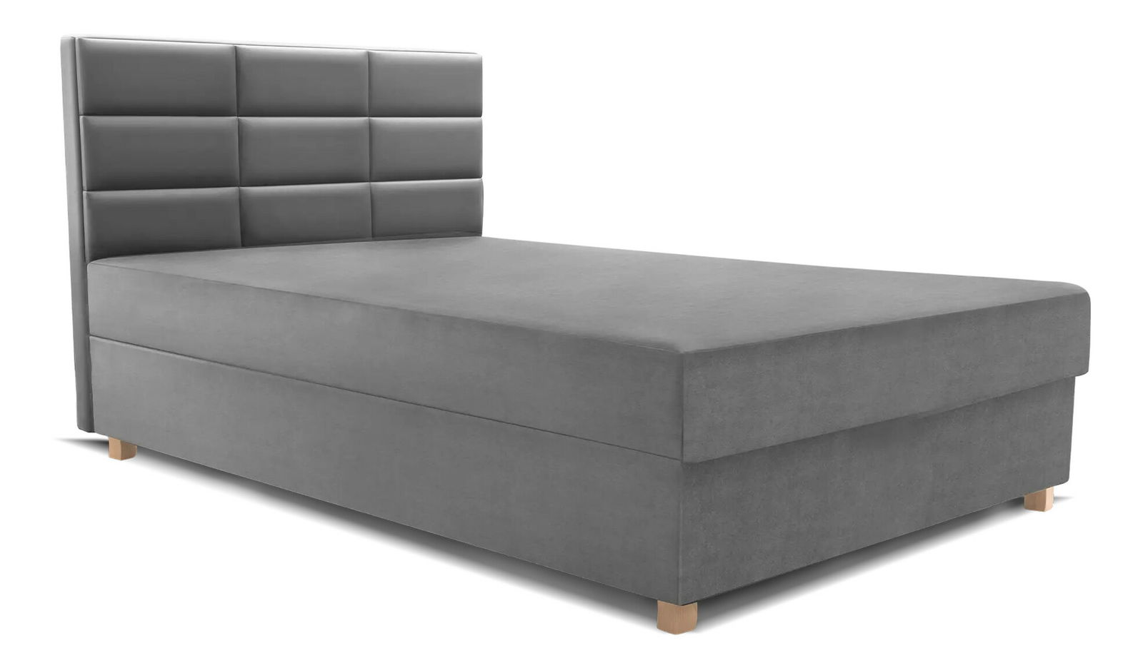 Moderní jednolůžková postel 120 cm - Picasso II (šedá) (s úložným prostorem a matrací) je ideální volba pro současný ložnicový interiér. Její konstrukce z masivního dřeva a dřevotřísky zaručuje odolnost a stabilitu. Prošívané čelo postele přidává dotek luxusu a sofistikovanosti, což ji činí atraktivním prvkem v místnosti. Postel je vybavena praktickým úložným prostorem, který je snadno přístupný díky liftovému mechanismu. Tento prostor je ideální pro uložení ložního prádla nebo jiných předmětů, čímž šetří místo v místnosti. K posteli je přiložena matrace, která poskytuje pohodlný a podpůrný spánek. Nožičky postele jsou vyrobeny ze dřeva, což přidává moderní vzhled a zároveň zajišťuje pevnou podporu. Rozměry plochy na spaní jsou 120x186 cm, což je dostatečné pro jednu osobu. Výška od země po vrch matrace je 46 cm, umožňující snadné vstávání z postele. Postel je potažena tkaninou Bluvel, která je příjemná na dotek a dodává posteli estetický vzhled.