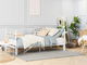 Tato víceúčelová postel je ideální volbou v případě, že máte v pokoji málo místa, protože přes den skvěle poslouží jako stylová pohovka a v noci jako pohodlná postel. Díky výsuvnému nástavci můžete snadno rozšířit plochu na spaní az jednolůžkové postele vytvořit velkou postel pro dvě osoby. Postel s krásně tvarovaným kovovým rámem s bílou povrchovou úpravou zkrášlí a zútulní celou místnost. Lze ji zkombinovat s různými doplňky a vytvořit tak romantický, moderní nebo minimalistický vzhled.