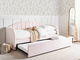 Tato multifunkční postel je ideálním kusem nábytku do dětského nebo pokoj pro hosty. Sametové čalounění v pastelové barvě a moderní design z ní dělají nadčasový kus nábytku. Díky opěradlu lze použít jako pohovku a po vysunutí spodní části získáte další plochu na spaní. Odolný rám, lamelové rošty a stabilní konstrukce zaručují dlouhotrvající kvalitu.