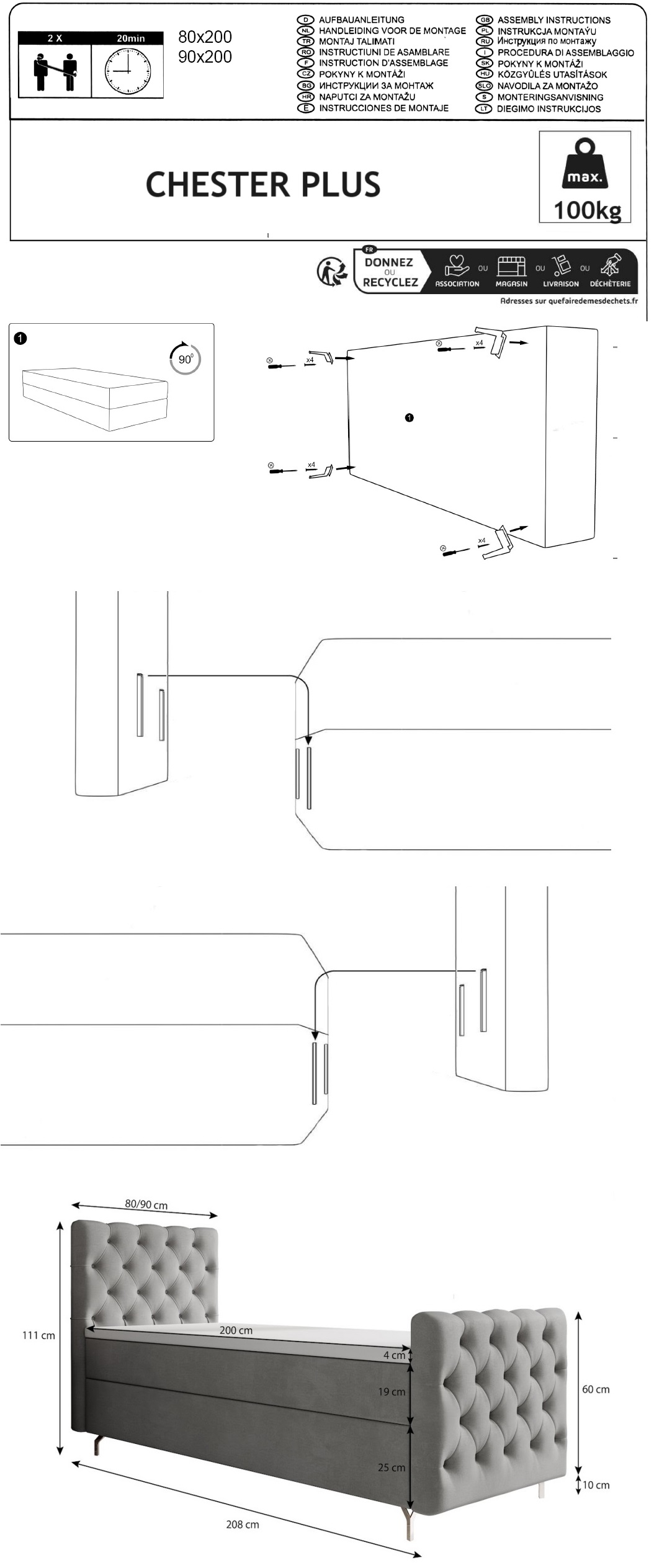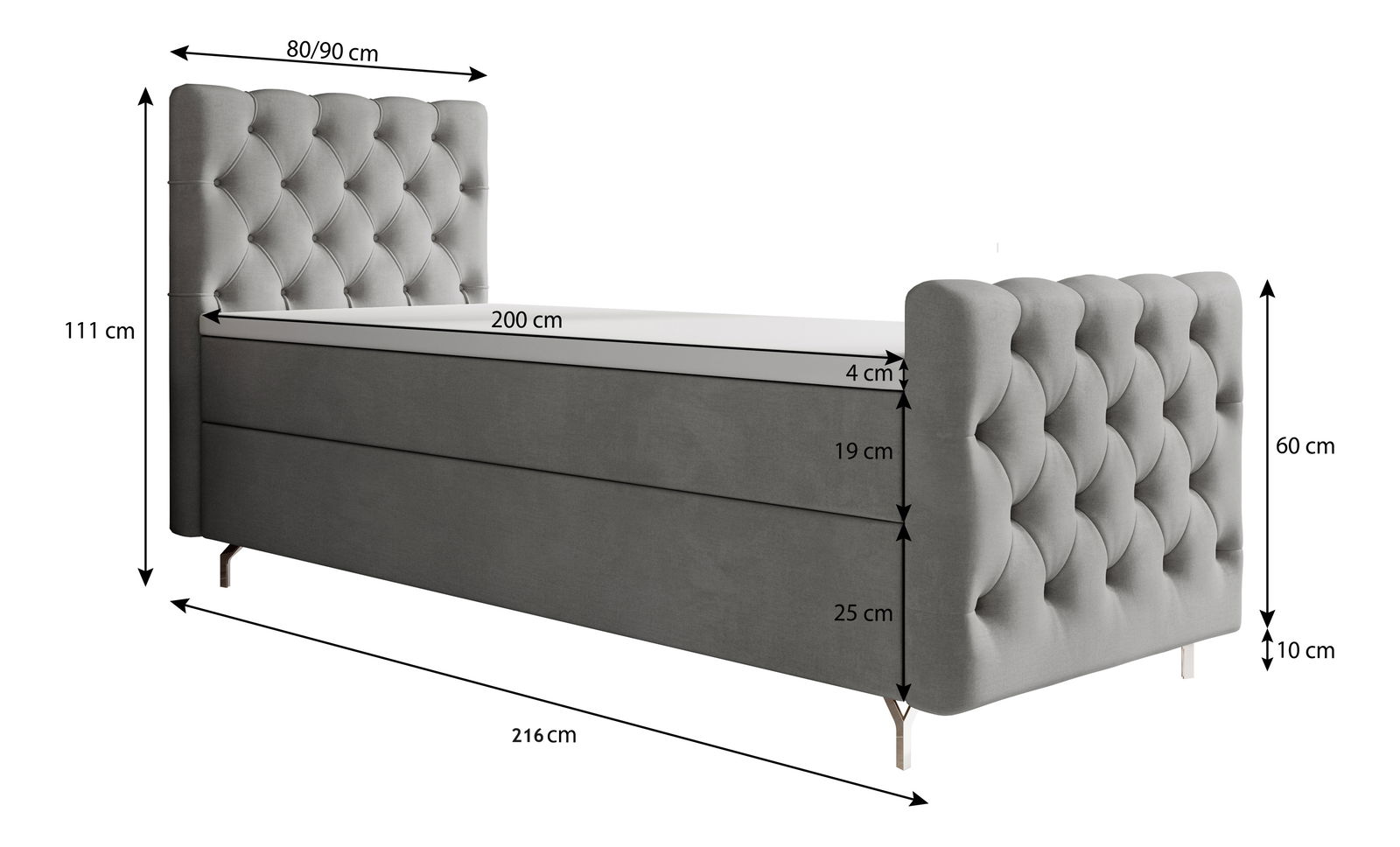 Rozměry postele (VxŠxH): 111x80x208cm