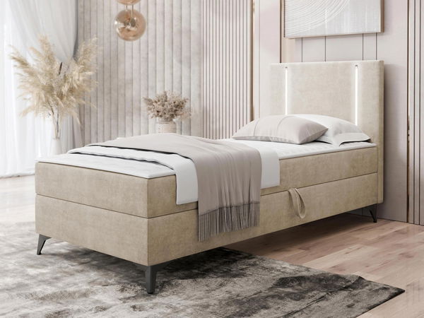 Jednolůžková postel 80 cm Hebara 1 (béžová) (s roštem a matrací) (s úl. prostorem) (L)