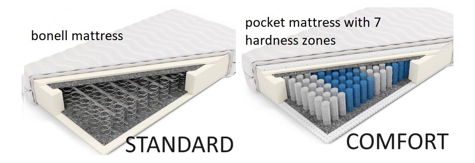 Matrac Comfort obsahuje až 7 komfortních zón, čímž poskytuje velmi dobrou oporu pro páteř