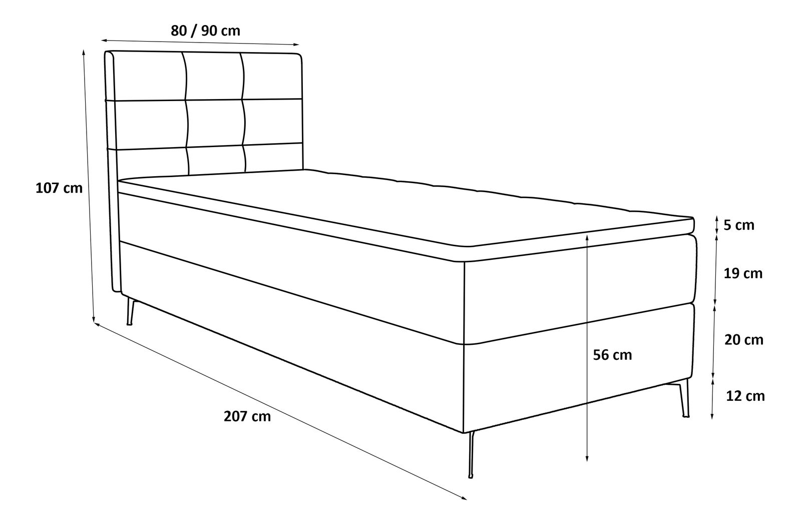 Rozměry postele (VxŠxH): 107x80x207cm