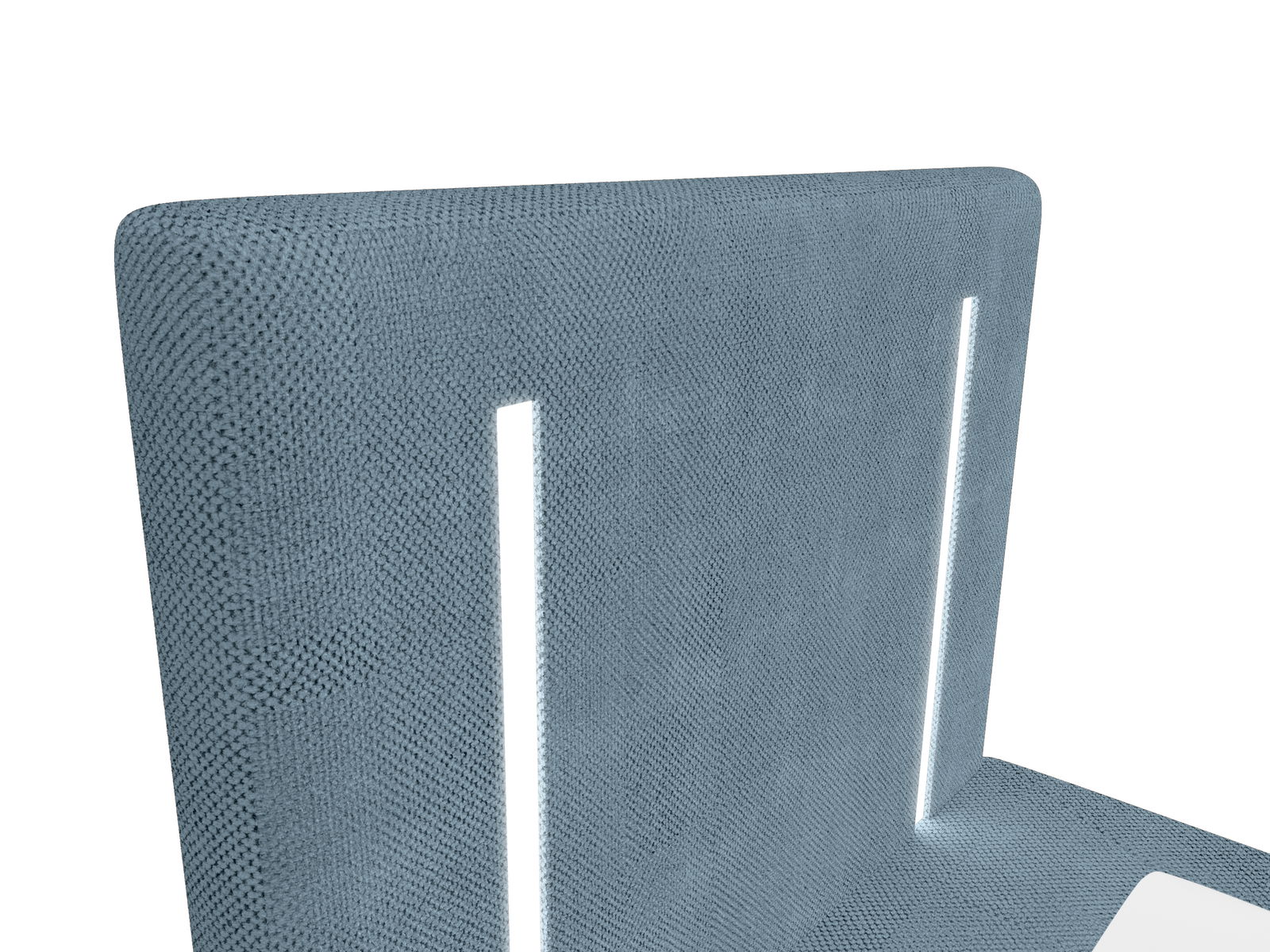 Disponuje moderním a stylovým LED osvětlením v podobě dvou svislých LED pásků na čele postele