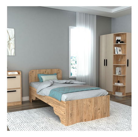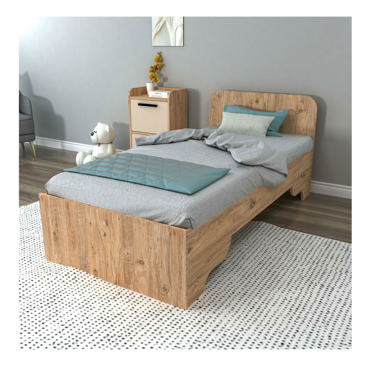 Jednolůžková postel 80 cm Poleso 2 (borovice atlantická + béžová) (s roštem)