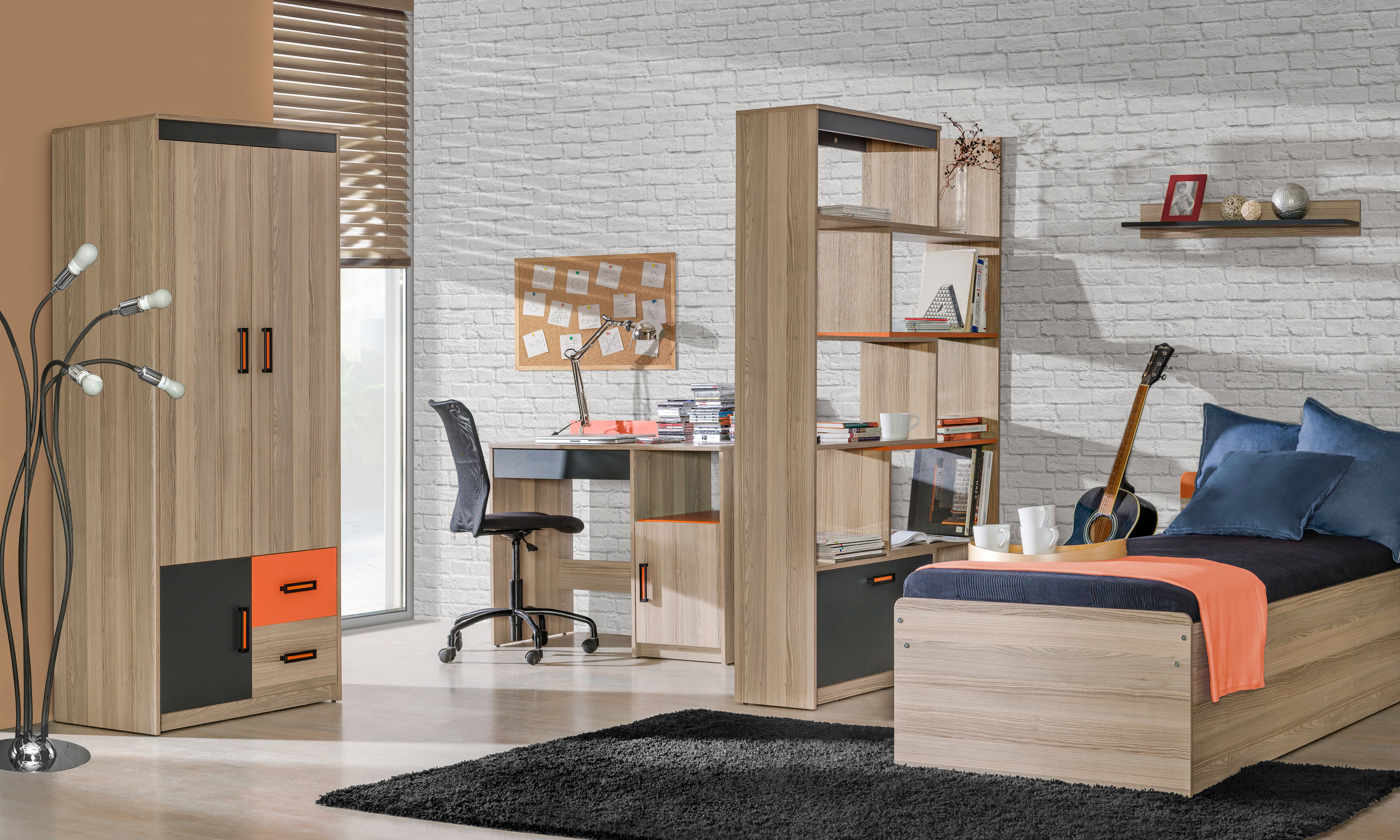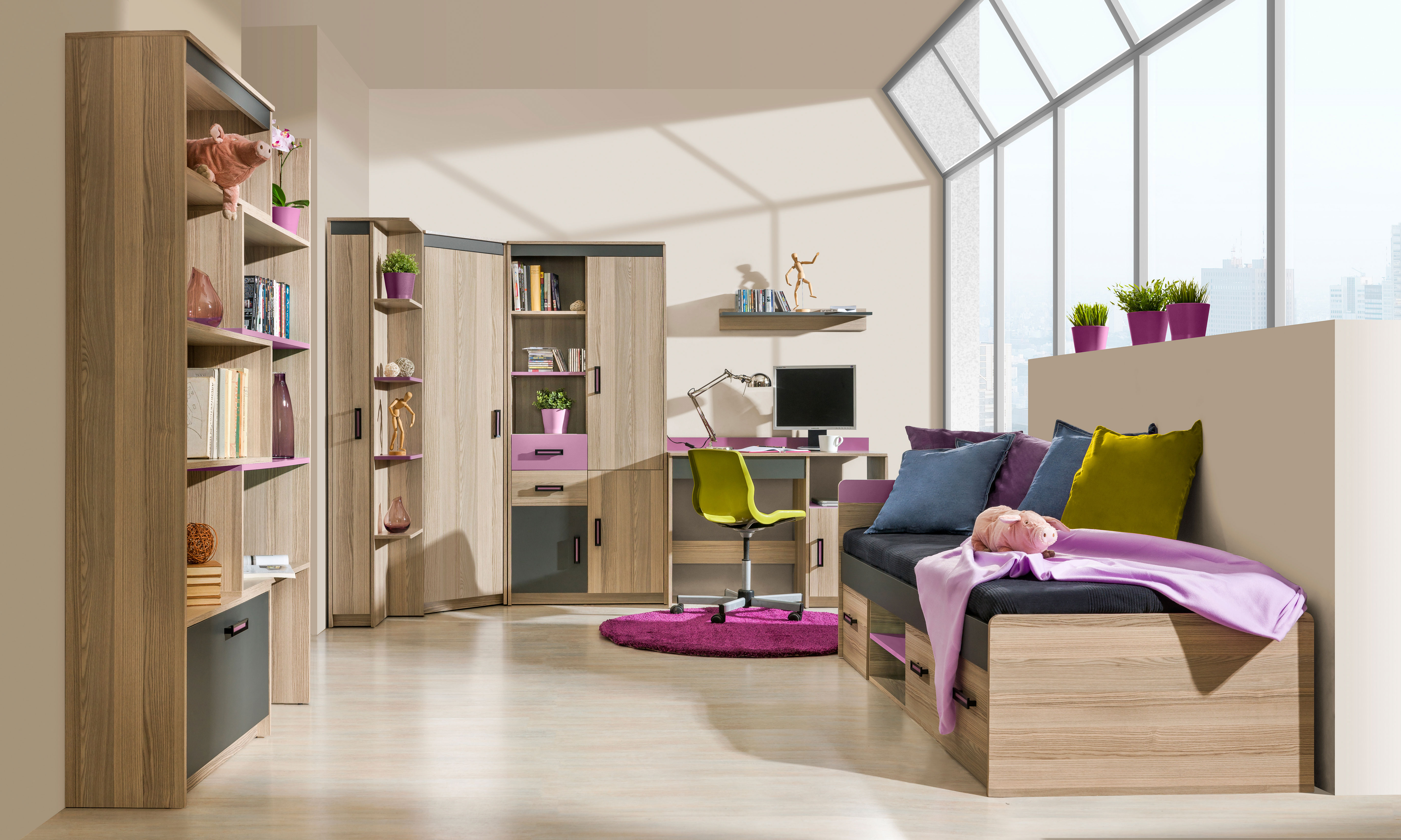 Dětská postel Ulmo s roštem a úložným prostorem je mimořádně praktická. Úložný prostor sestává z 2 zásuvek a poličky. Menší zásuvka pod hlavou se dá použít i jako noční nebo příruční stolek, protože na vrchní části je deska a věci se do ní ukládají z boční strany. Vyrobená z laminovaných desek.