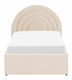 Tato čalouněná postel v béžové barvě, která je kombinací estetického designu a funkčnosti, bude dokonalým doplňkem do dětského pokoje nebo menší ložnice. Je vyrobena z kvalitního sametu a odolného MDF materiálu a vydrží léta i bez každodenní údržby. Díky velkému úložnému prostoru, který je umístěn pod lamelovým roštem, je vhodná pro odkládání polštářů nebo náhradních přikrývek. Půlkruhové čelo, které designu postele dodává nádech retro stylu, rozhodně upoutá vaši pozornost.