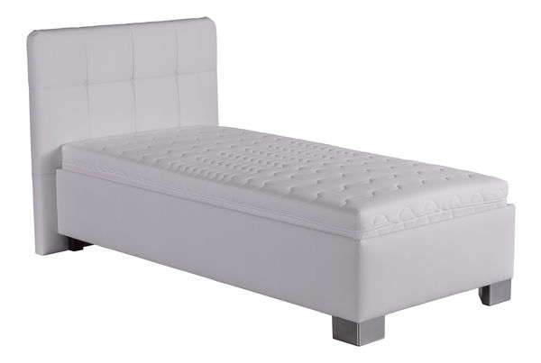 Přemýšlíte nad designově přitažlivou a zároveň pohodlnou postelí? Tato jednolůžková postel vyniká vyšším prošívaným čelem a moderním designem, který bude ozdobou Vaší ložnice. Je dodávána s polohovatelným lamelovým roštem, který má funkci polohování hlavy a nohou. Úložný prostor, přístupný od nohou, se hodí na uskladnění ložního prádla nebo jiných doplňků.