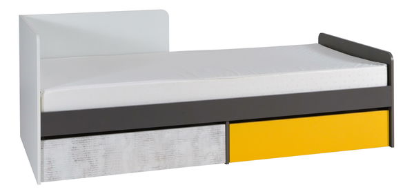 Krásná jednolůžková postel s přitažlivým designem zejména pro teenagery a mladé lidi. Kromě stylového vzhledu se vyznačuje i praktickým řešením úložného prostoru ve spodní části postele. Dvě zásuvky poskytnou prostor pro odložení ložního prádla, oblečení a dalších doplňků. Levé provedení postele.