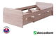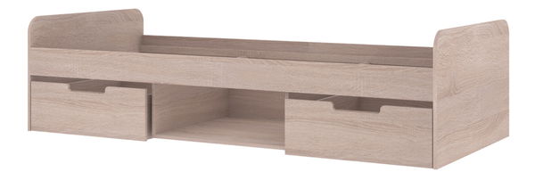 Jednolůžková postel do dětského či studentského pokoje. Pod postelí se nachází úložný prostor v podobě dvou zásuvek a jednoho otevřeného místa. Čelo u hlavy a nohou je vyvýšené.
