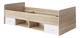 Jednolůžková postel Emio s pěkným moderním designem, dvěma zásuvkami a otevřenými poličkami. Postel se hodí do dětských a studentských pokojů. Poskytuje zároveň úložný prostor například pro hračky nebo boty. Barevné provedení postele je dub sonoma v kombinaci s bílou.