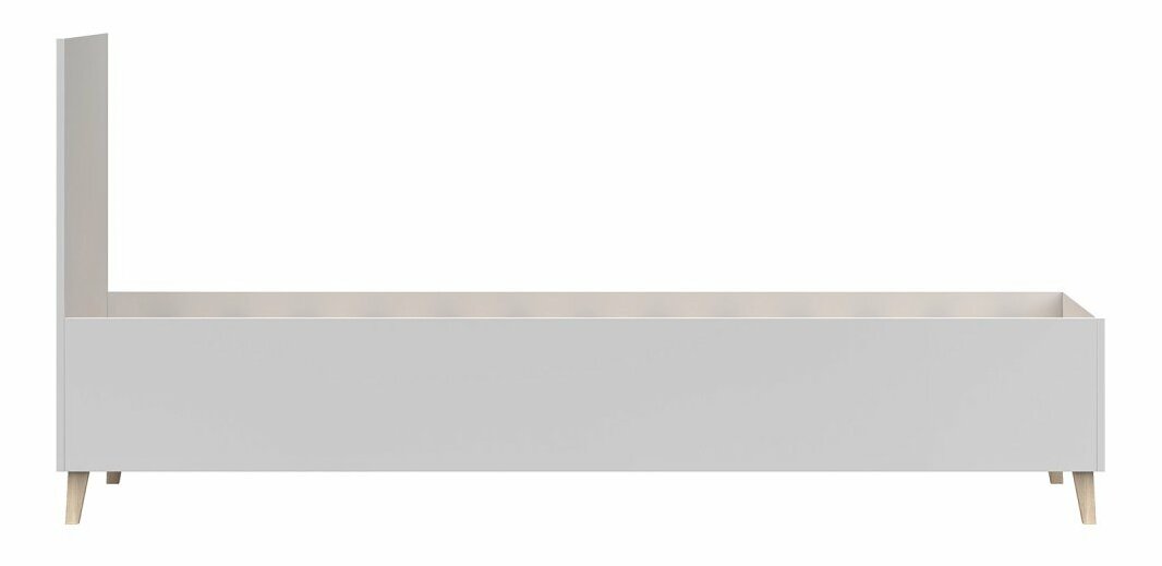 Jednolůžková postel 90 cm - Figu (bílá) o výšce 95 cm, šířce 93 cm a hloubce 205 cm je praktickým a stylovým řešením pro studentský pokoj. Tato studentská postel ve skandinávském stylu je vyrobena z 16 mm silné dřevotřísky, která je posílena 0,5 mm ABS hranami. Postel je vybavena koženými úchyty ve tvaru poutka a dřevěnými nožičkami o výšce 14 cm, což jí dodává moderní vzhled. Postel neobsahuje vlastní úložný prostor, rošt ani matraci, ale je vhodná pro rošt a matraci o rozměrech 200x90 cm. Tento design je ideální pro studenty, kteří hledají jednoduchou, ale stylovou a pohodlnou postel do svého pokoje.