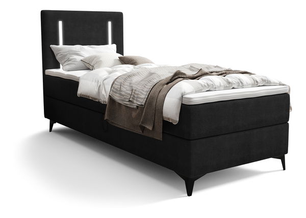 Jednolůžková postel 90 cm Ortega Comfort (černá) (s roštem a matrací, s úl. prostorem) (s LED osvětlením)