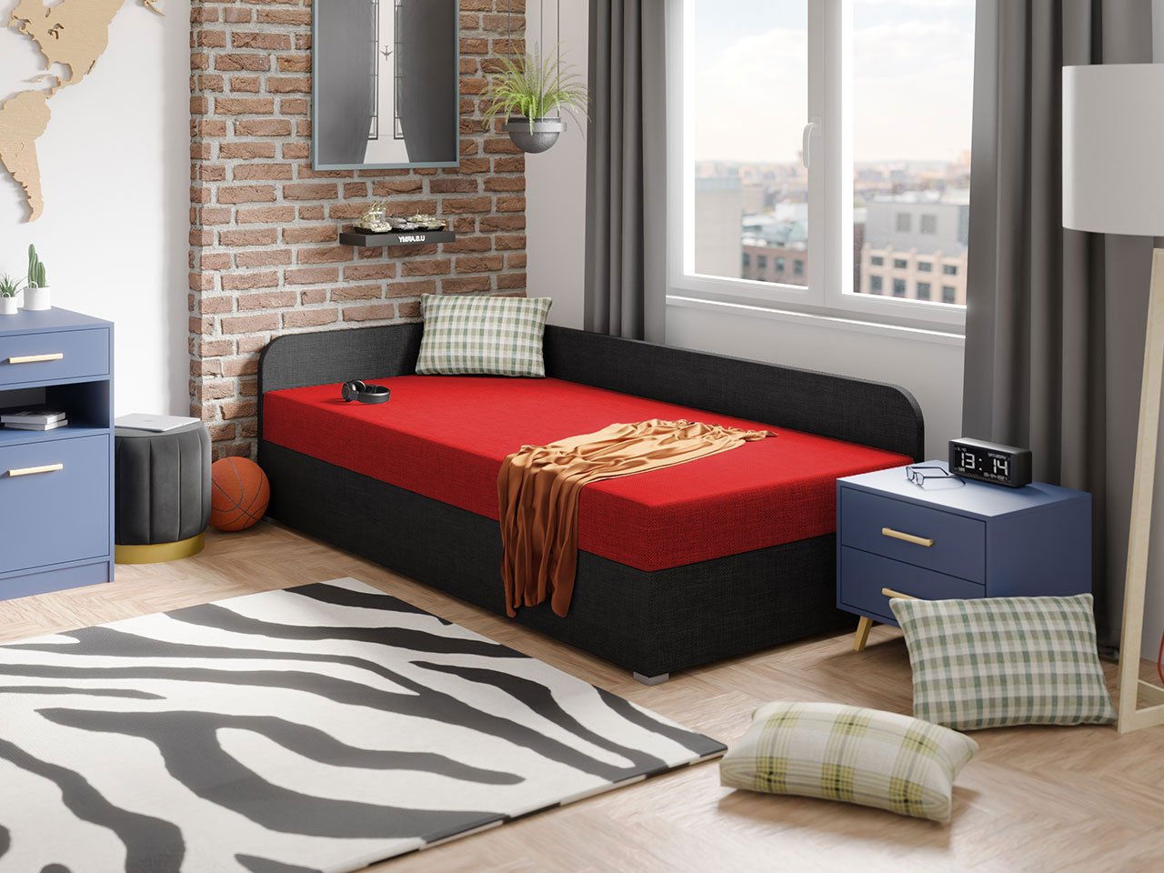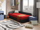 Jednolůžková postel Raphael je dokonalým návrhem do pokoje pro mladé, ale nejen pro ně. Představený model čalouněné postele se dodává v zajímavých barevných variantách, které dobře ladí se současnými trendy v interiérovém designu. Kromě toho má postel zabudovanou matraci, jejímž základem jsou odolné pružiny typu bonell a pohodlná pěna T30. Matrace je středně tvrdá. Další výhodou prezentovaného modelu je nádoba na lůžkoviny, která se nachází ve skříňce nábytku, jakož i čalouněné opěradlo, díky kterému můžete chránit stěny před znečištěním a rychle přeměnit postel na mini pohovku přidáním například polštářů.