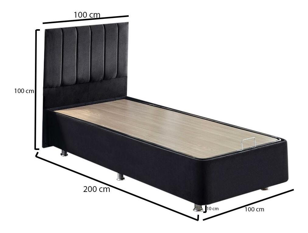 Jednolůžková postel s čalouněným čelem 100 cm Kemadi (černá) (s roštem) (s úlož. prostorem)