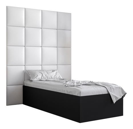 Jednolůžková postel s čalouněným čelem 90 cm Brittany 3 (černá matná + bílá) (s roštem)