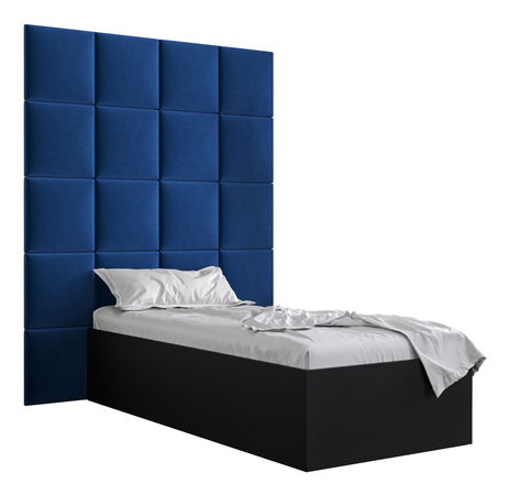 Jednolůžková postel s čalouněným čelem 90 cm Brittany 3 (černá matná + modrá) (s roštem)