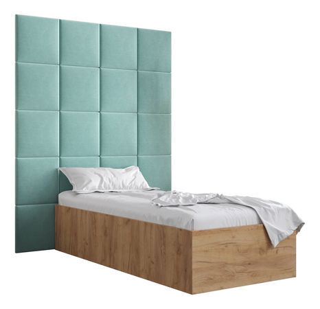 Jednolůžková postel s čalouněným čelem 90 cm Brittany 3 (dub craft zlatý + mátová) (s roštem)