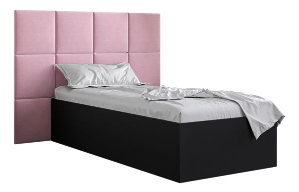 Jednolůžková postel s čalouněným čelem 90 cm Brittany 4 (černá matná + růžová) (s roštem)