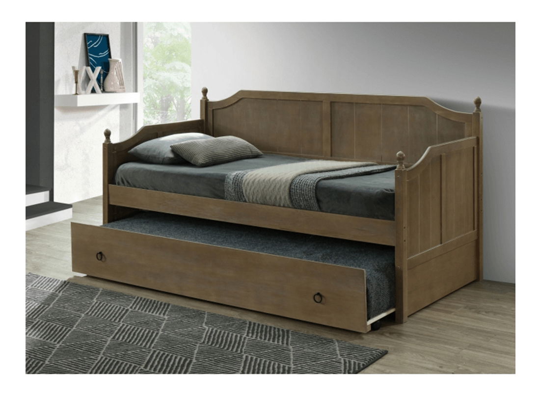 Stabilní postel z masivu přichází v moderním designu s nádechem romantismu. Masivní dřevo bylo doplněno o prvky z MDF. Postel je stylová také pro své barevné provedení. Dub antický je v současnosti velmi populární, dodává prostoru energii. Sloupky boční zástěny jsou doplněny ozdobnými věžičkami. Koupí Byrma získáte ne jedno lůžko, ale hned dvě. Ve spodní části naleznete přistýlku, kterou vysunete potáhnutím za dřevěné úchytky. Postel dodáváme s laťkovými rošty, bez matrací.