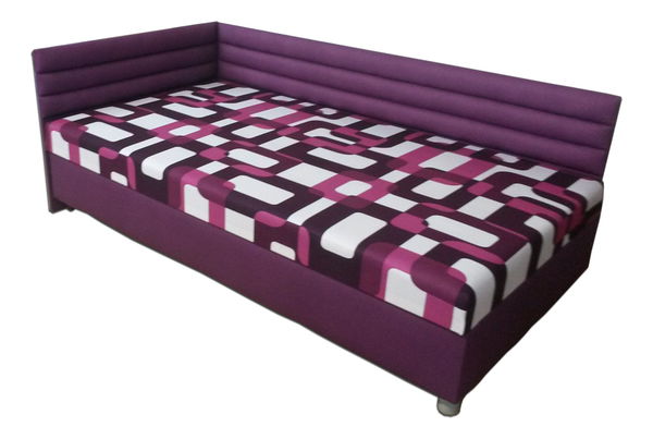 Moderní design a elegance v jednom. Jednolůžková postel, válenda, vhodná do dětských pokojů. Pod ložnou plochou se nachází úložný prostor, který je přístupný vyklopením z boku. Matrace je uložena na lamelovém roštu. Na dvou stranách postele se nacházejí čela. Postel je postavena na vyšších nožičkách. Výška ložné plochy je 50 cm.